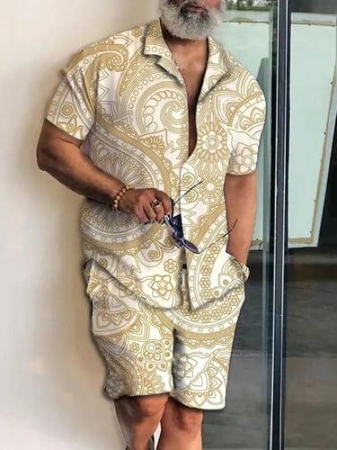 Men's Graphic Color Block 2pcs Tee Top Short Sleeve Long pants Tees sets Crew Neck Designer Casual Comfortable Outdoor Vacation Daily 3D Print Blue Dark Green Brown
