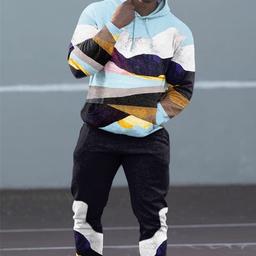 Men's Graphic Geometric 2pcs Hoodies Long Sleeve Long pants 3D Sweatshirt Sets Hooded Streetwear Sportswear Basic Sports & Outdoor Casual Sports Print Black And White Black White