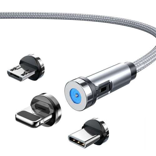 5A Magnetic Multi Charging Cable 3.3ft 6.6ft USB A to Lightning / micro / Type C Fast Charging 3 in 1 540° Rotating Phone Charger Nylon Braided USB Cable For IPhone/Micro USB/Type C Device