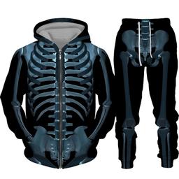 Men's Tracksuit Full Zip Hoodie Hoodies Set Black And White White Blue Gray Hooded Graphic Skeleton Zipper 2 Piece Print Sports & Outdoor Casual Sports 3D Print Streetwear Designer Basic Spring Fall