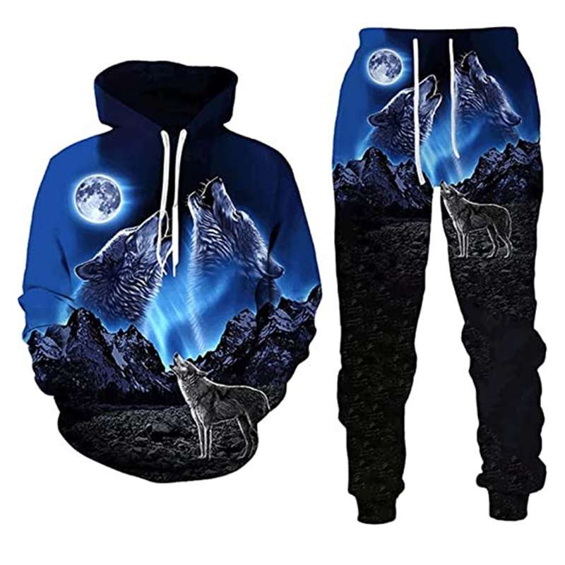 Men's Tracksuit Hoodies Set Blue Hooded Graphic Animal Wolf 2 Piece Print Sports & Outdoor Casual Sports 3D Print Streetwear Designer Basic Spring Fall Clothing Apparel Hoodies Sweatshirts Long