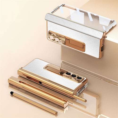Phone Case With Pen For Samsung Galaxy Z Fold 6 Z Fold 5 Z Fold 4 Z Fold 3 Back Cover with Stand and Screen Protector Pencil Holder PC Metal PU Leather