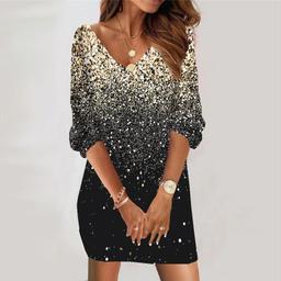 Women‘s Casual Dress Bodycon Sheath Dress Mini Dress Gold 3/4 Length Sleeve Color Gradient Print Summer Spring Fall V Neck Loose Fit 2023 S M L XL XXL 3XL